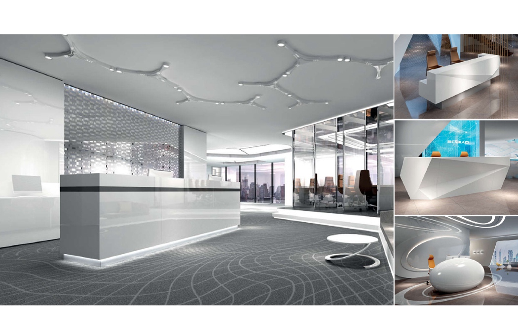 Reception, there are a variety of straight line and different Angle radian, are adhering to the concept of human design, flexibility, functional, no matter where the reception staff can maintain the most sincere smile and the most full of enthusiasm.